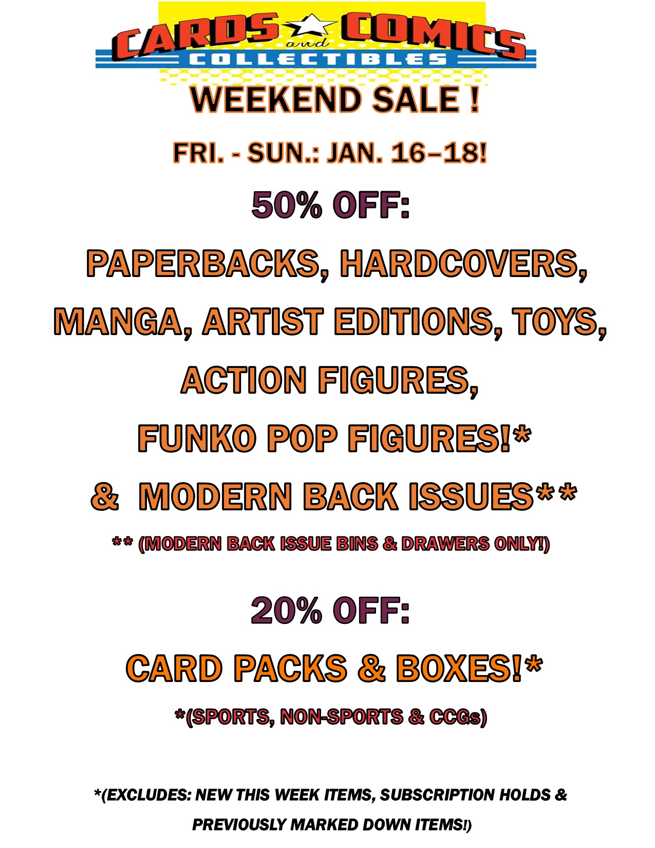WEEKEND SALE ! FRI. – SUN.: JAN. 16–18!