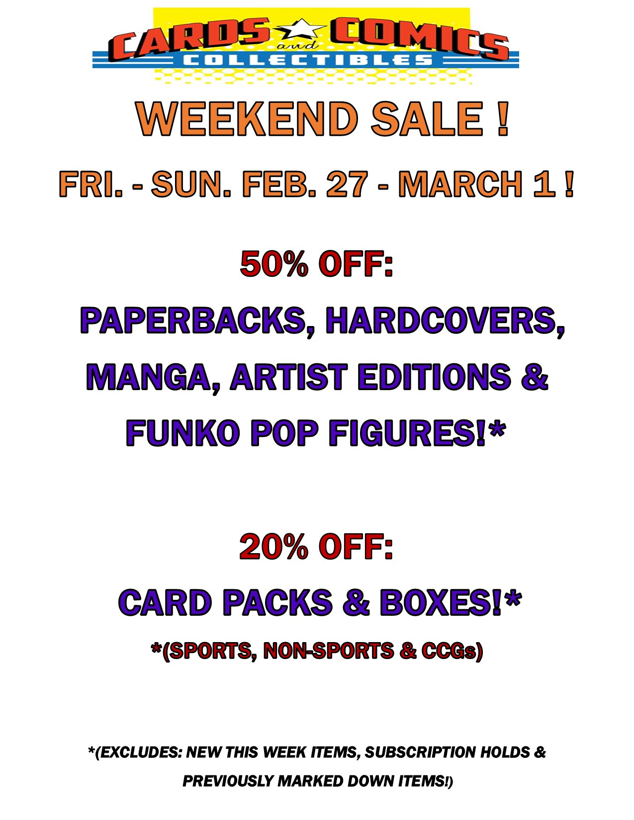*(EXCLUDES: NEW THIS WEEK ITEMS, SUBSCRIPTION HOLDS &