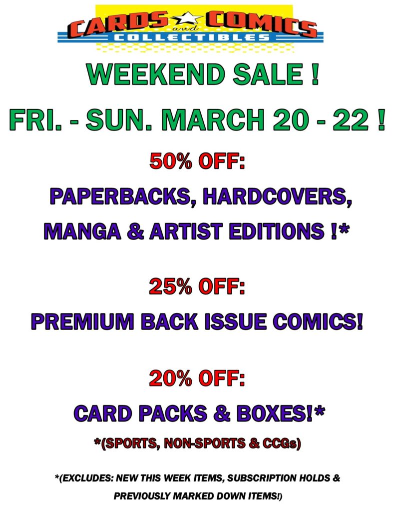 WEEKEND SALE! FRI. – SUN. MARCH 20 – 22 !