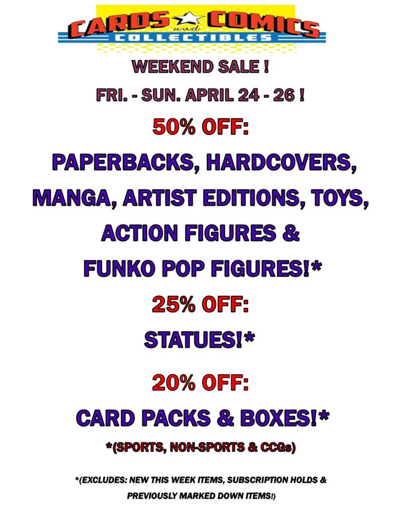WEEKEND SALE ! FRI. – SUN. APRIL 24 – 26 !